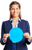 Geschäftsfrau und Handwerker mit Schloss und Schlüssel