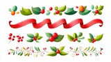 Watercolor Christmas Borders With Red Berries Green Leaves and Ribbon on White Background for Holiday Designs and Festive Projects
