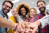Diverse group of friends come together in a cheerful group photo showcasing unity and teamwork