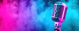 Retro Microphone On Colorful Smoke Background Vintage Mic For Concerts Karaoke Nights And Music Events Entertainment Concept