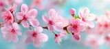 Delicate Pink Cherry Blossoms On Branch With Blue Background For Springtime Celebrations And Floral Designs Representing Renewal And Beauty