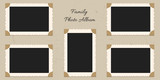 Family portrait pictures in frames on albom. Vector page of photo album, with photo frames and corner.
