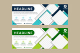 blue green abstract corporate business banner template, horizontal advertising layout. flat design. clean geometric cover header background for website design. square space for photo collage.