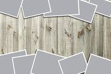 Photo collage grid. Vector. Mood board template. Set of blank moodboard. Mosaic frame banner. Pictures on gray background. Photography album layout. Horizontal design of mockup. Simple illustration.