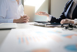 Entrepreneurs having a discussion. Experienced business coach talking to group of people. Young manager sharing ideas, opinions and points of view trying to convince teammates to follow his suggestion