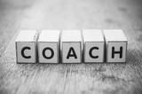 Closeup of word on wooden cube on wooden desk background concept - coach