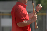 Back of football coach wearing white COACH shirt at an outdoor sport field coaching his team during a game