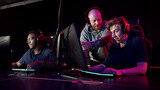 During a computer games tournament, a young guy is nervous, the coach tells him the tactics of the fight