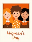 Illustration Of Three Diverse Women In A Frame For Women's Day Celebration And International Holiday Greetings On White Background