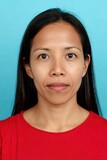 Photo ID portrait of an Asian Filipino woman in front-facing view with red shirt