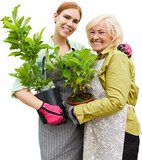 Young florist and senior gardener as a nursery team