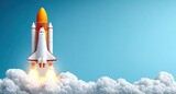 Futuristic space shuttle launch over Earth with fiery boosters igniting into the night sky