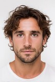 Front-facing photo ID portrait of a young Greek male with brown hair