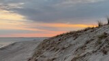 Pan shot of sunset over the Baltic Sea: beach, sand dunes, and beach grass at Graal-Müritz, Germany.