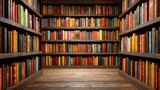 Library with bookshelves full of colorful books vintage style knowledge and learning concept education background