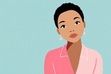 Illustration Of A Young African American Woman With Short Hair Pink Earrings And Shirt On A Blue Background For Fashion And Beauty Projects