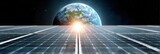 Solar Panels With Earth Globe And Sunlight In Space For Green Energy And Renewable Resources Concepts And Environmental Protection