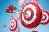 Red Target With Arrows On Blue Background For Accuracy And Precision In Business And Marketing Concepts And Achieving Goals And Objectives