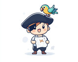Cute pirate adventurer with a parrot companion holding a treasure map