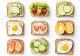 Assorted healthy sandwiches with a variety of fresh and vibrant toppings
