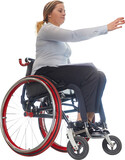 Inclusion and conversation among friends, one woman and two men using wheelchairs indoors