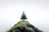 Solitary tree on mountaintop in foggy landscape showcasing natural serenity