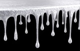 Silvery metal table top melts into dripping, glossy lines against a stark black background