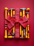 Gift wrapped with a red ribbon of tools, a DIY present ready for a handyman