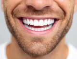 Joyful woman with curly brown hair smiling warmly in close-up portrait