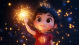 Charming anime style fluffy creature in a vibrant pastel-colored forest