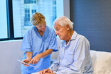 Nurse helping a senior patient during recovery in a rehabilitation facility