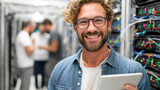 Mann als Kommissionierer im Warenlager einer Fabrik