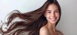 Joyful woman with curly brown hair smiling warmly in close-up portrait