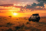Animated Caucasian woman watching the sunrise over the savanna