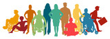 Silhouetten aktiver erwachsener Menschen in Freizeit und Beruf