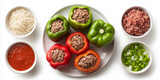 A plate of cooked stuffed bell peppers with ingredients