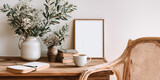 A clean, modern, and minimalist interior is shown with black frame mockup.