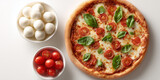 A cooked Margherita pizza with ingredients