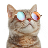 Cat with sunglasses isolated on transparent background. PNG