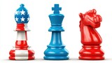 Chess Pieces Bishop With American Flag Blue King Red Knight on White Background Strategy Competition Politics and Elections