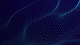 blue colorTechnology digital wave background concept.Beautiful motion waving dots texture with glowing defocused particles. Cyber or technology and black background.