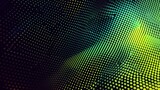 Abstract background of glowing green and yellow dots in a wave pattern.