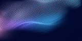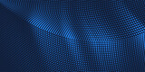 Blue halftone digital dot pattern moving wave. Abstract gradient deep blue grid background. Futuristic graphic concept.