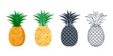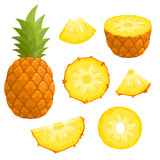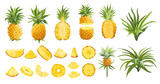 Pineapple set. Pineapple collection. Whole and sliced pineapple isolated on white background with clipping path