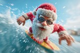 Funny cat wearing Santa hat and sunglasses during festive Christmas season