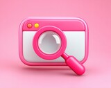 Pink Browser Window With Magnifying Glass On Pink Background For Search Engine Optimization And Website Analysis