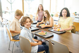 Smiling kids having lunch in school cafeteria