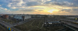 Panoramic view of a snowy winter landscape in Lapland at sunrise