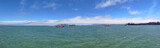 Panoramic view of ships on a tranquil sea under a blue sky