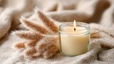 Natural candle with soft pampas grass evoking a cozy and tranquil setting